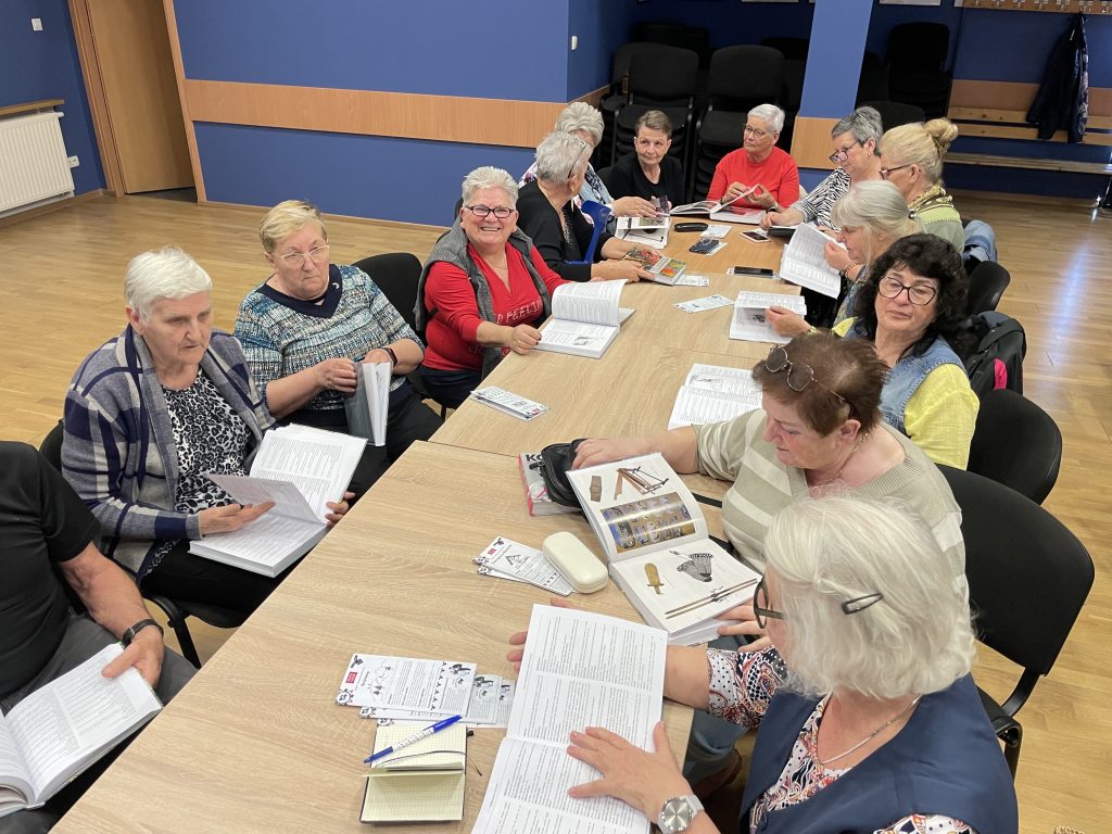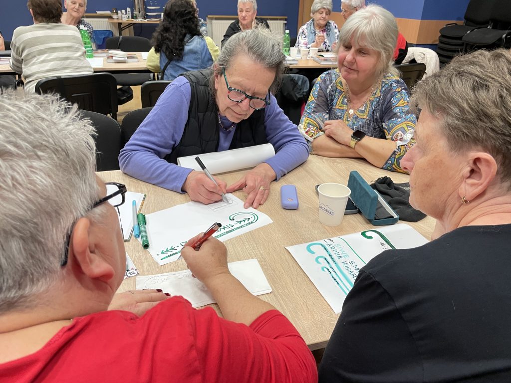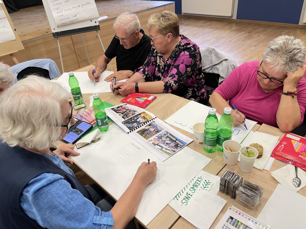 On the first day (April 24th, 2025) the idea of the ITOSA project was presented and an example of an interesting mandala designed to promote local heritage of Flekkefjord in Norway was presented to the participants. Next we started brainstorming on places, people, events, words, objects that are important for the local community and should be placed in mandala as a symbol of Piwniczna-Zdrój. In the next part of the workshops seniors started to draw different symbols that could be used in the mandala which we discussed.